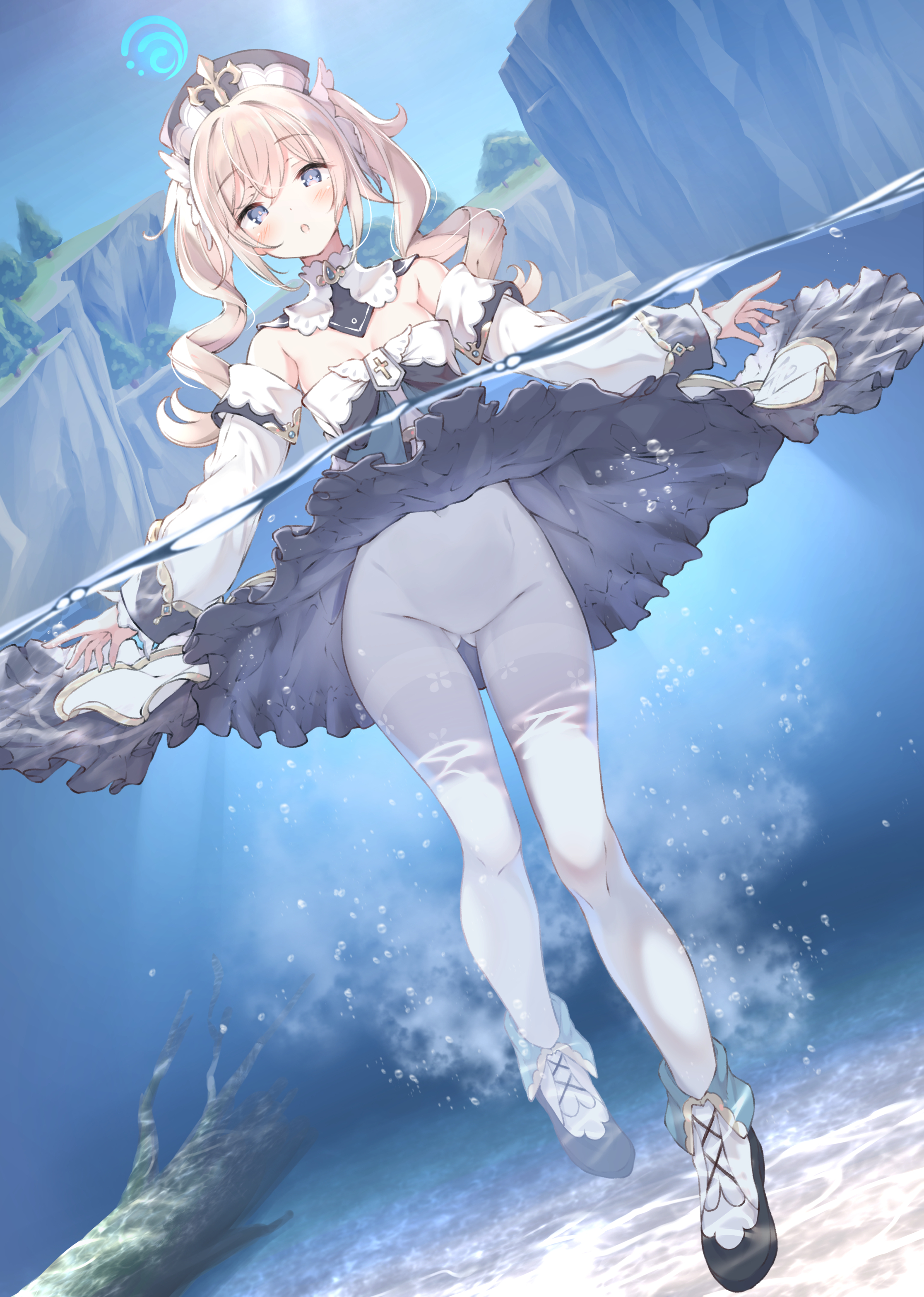 バーバラ(原神) に射精しました。 #白タイツ / #おまた / #鼠蹊部 / #おへそ バーバラちゃんが浮かんでるだけ | 浮輪汽船