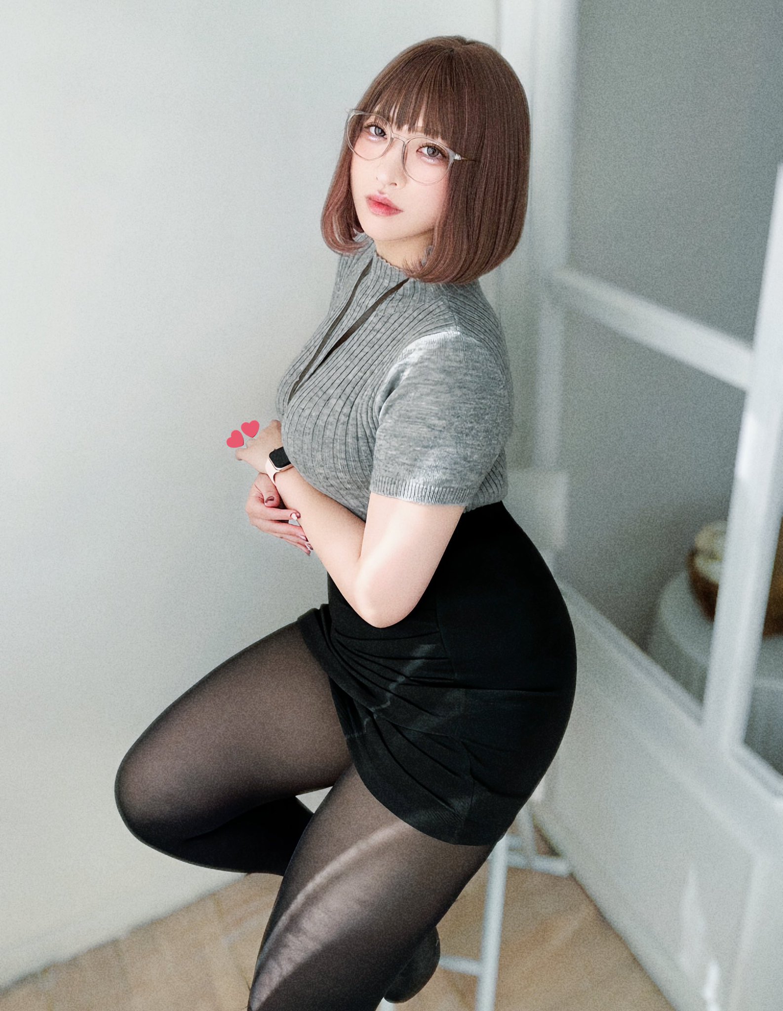 タイトスカート×黒タイツ