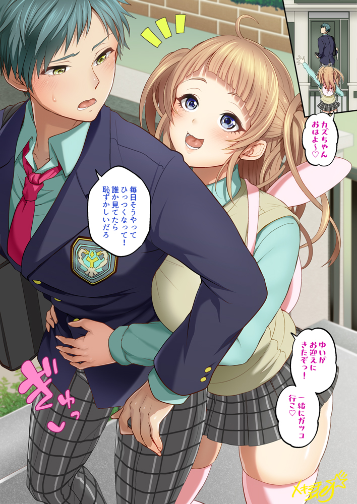Skebご依頼で頂いたオリジナル幼馴染ふたなり×男です!ファンティアご支援者様向けにセリフ有りの射精差分も公開してます!スカート無し差分含む6枚×2種、否ふたなり5枚、文字無しも有り。https://
