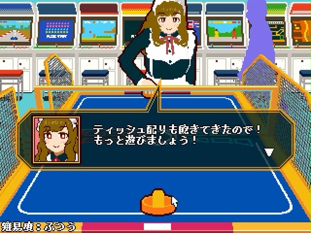 ゲーム紹介文 とある人気のないゲームセンター...。 そこではメイド長により、客引きの為 脱衣エアホッケーが行われていた。 計7人のメイドを脱衣させ、且つエアホッケーに勝利せよ! 体験版はこちらのページになります。 https://ryokuchamichi.booth.pm/items/2673899