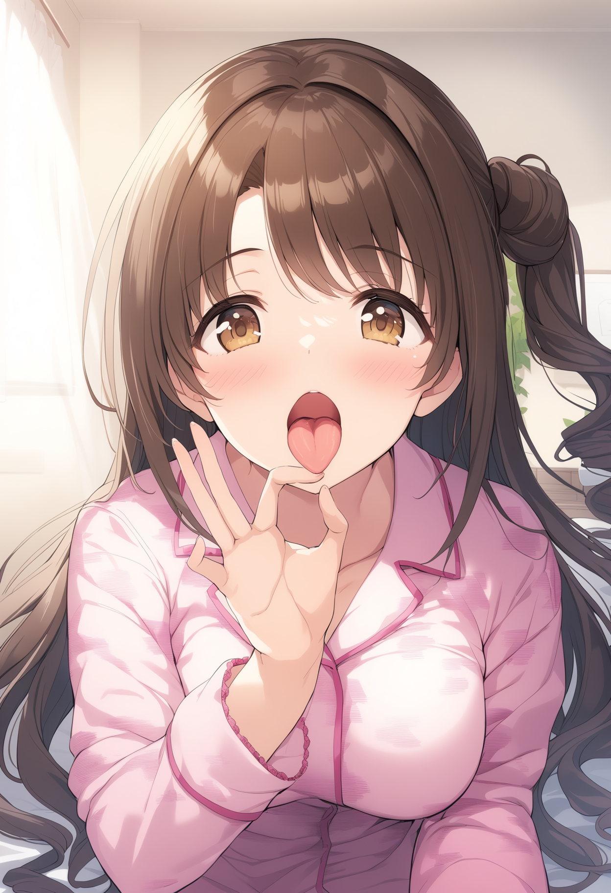 ベッドの上で明日葉に乳首を口で愛撫された霞は、チ〇ポを硬く勃起させてしまいます! 彼のズボンをズラし性器を露出させた彼女は、頬を赤く染めながらも手で扱い...