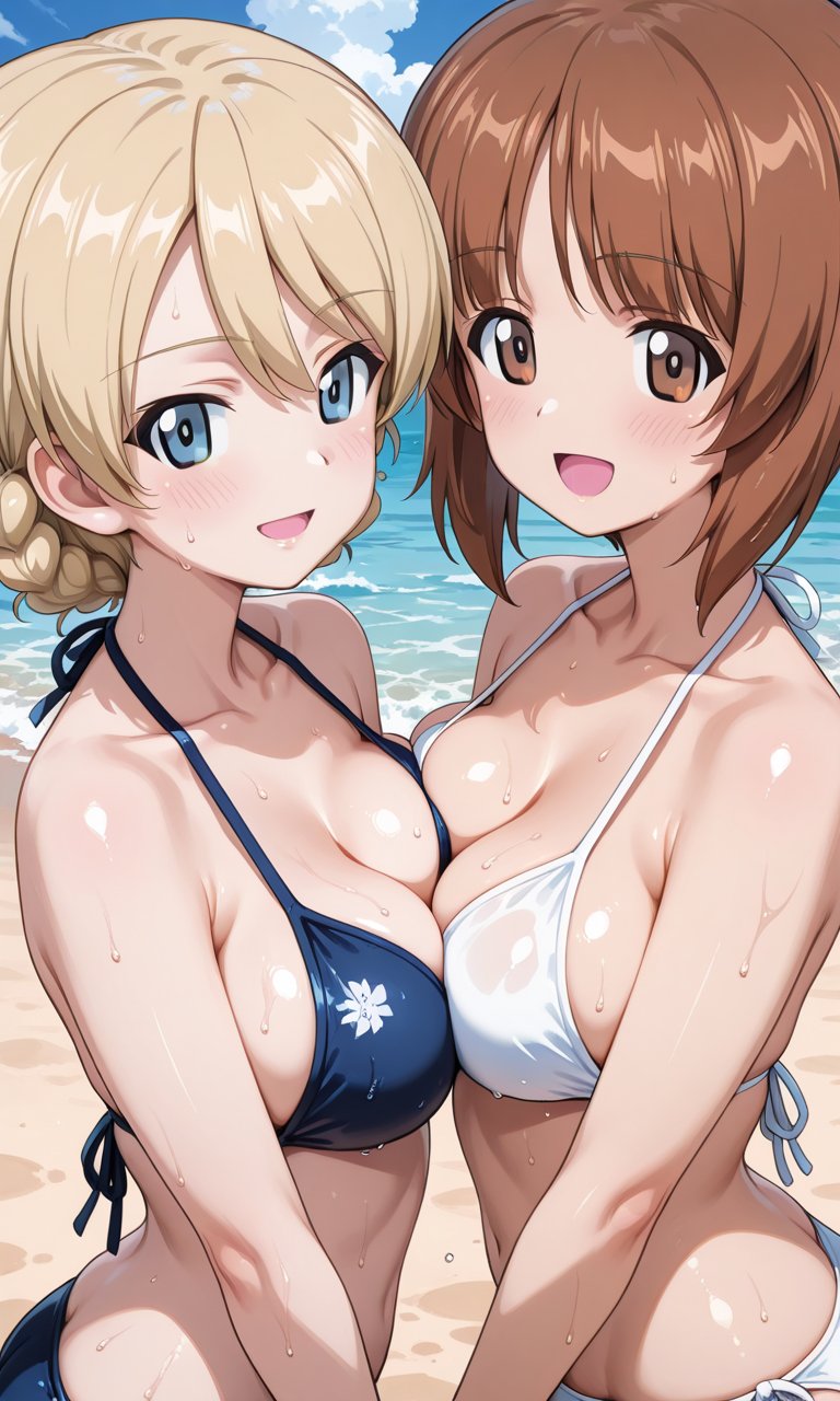 海に来たみぽりんとダージリン SFW. No nudity, no suggestive intent #AIイラスト #西住みほ #ダージリン