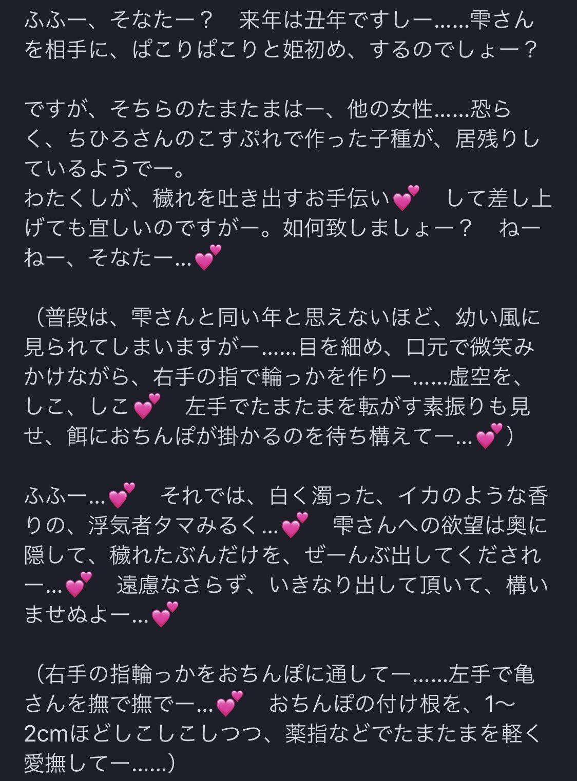 “日刊怪文書12月30日号。丑乳大好きなキンタマに微かに混ざった「💕穢れ💕」を、亀さん磨き回しで綺麗にして差し上げましょー。”